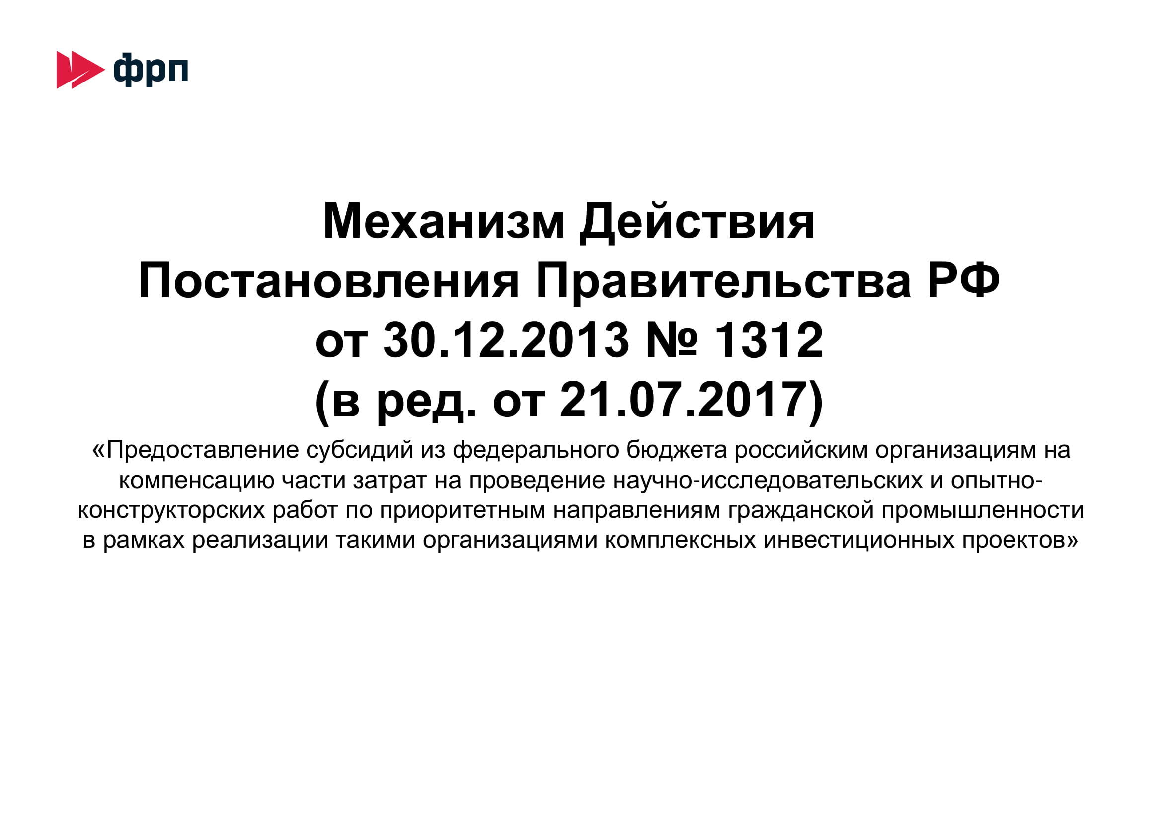 - Субсидия на возмещение затрат на НИОКР в рамках комплексных инвестпроектов ППРФ 1312